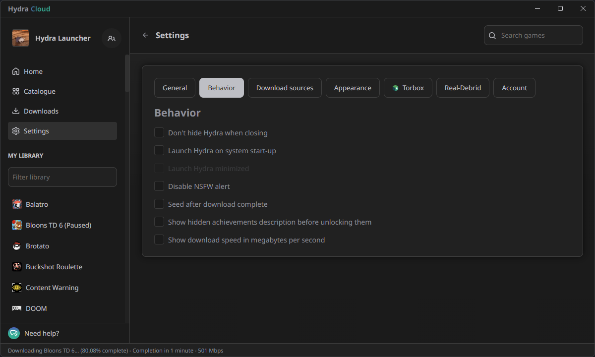 Nimbus will be an exclusive service for Hydra Launcher and we are launching it today in closed beta, at no additional cost, for Hydra Cloud subscribers. With it, you will not have to worry about a torrent being available or having enough seeds for you to have a decent download. There will also be no download limit, so you will not have to worry about your download being interrupted before finishing.