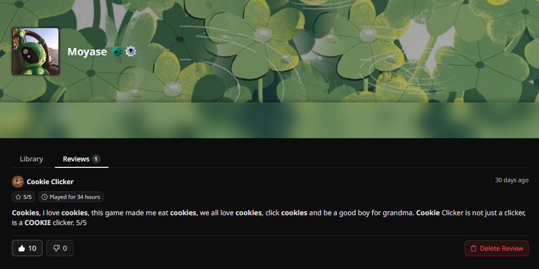 The Reviews tab was added to your profile, it shows all the reviews you’ve left on games — giving you an easy way to revisit your thoughts and share them with others.