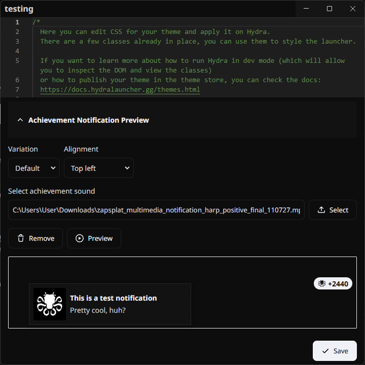 You can now customize the sound that plays when you unlock a new achievement in your theme!
