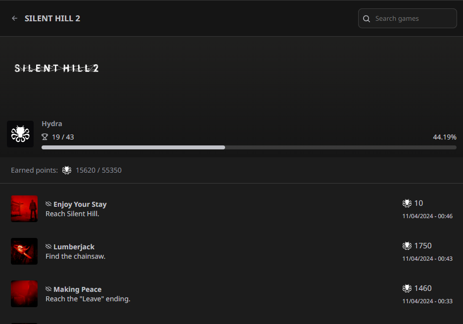 And, if you subscribe to Hydra Cloud, we are also able to sum the points and count the achievements you get!