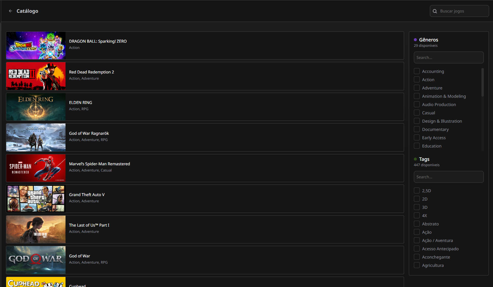 Find your favorite games or discover new ones using our Genres, Tags, and Sources filters!