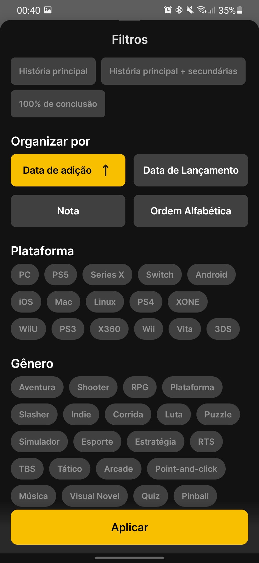 ● Games Completed by Year: A section where users can view the games they have completed in each year, such as "Completed 2024", "Completed 2025", including completion dates. This would help track personal progress over time. ● Platform Registration: The possibility of marking which stores or platforms the user owns a game on (Steam, Epic Games, Xbox, PlayStation, etc.). This would make it easier to manage the library and avoid duplicate purchases.