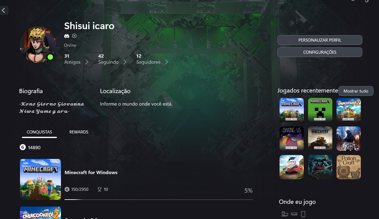 The profile tab would be a page just to display user data, similar to the Xbox App profile, showing games that the user has unlocked, achievements, biography, community posts (if this feature exists in the future), friends, scores, hours played and recent games