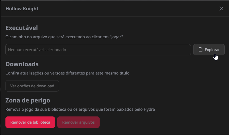 Para que você consiga executar o jogo diretamente pelo Hydra, é preciso que o Hydra saiba qual o executável do jogo.